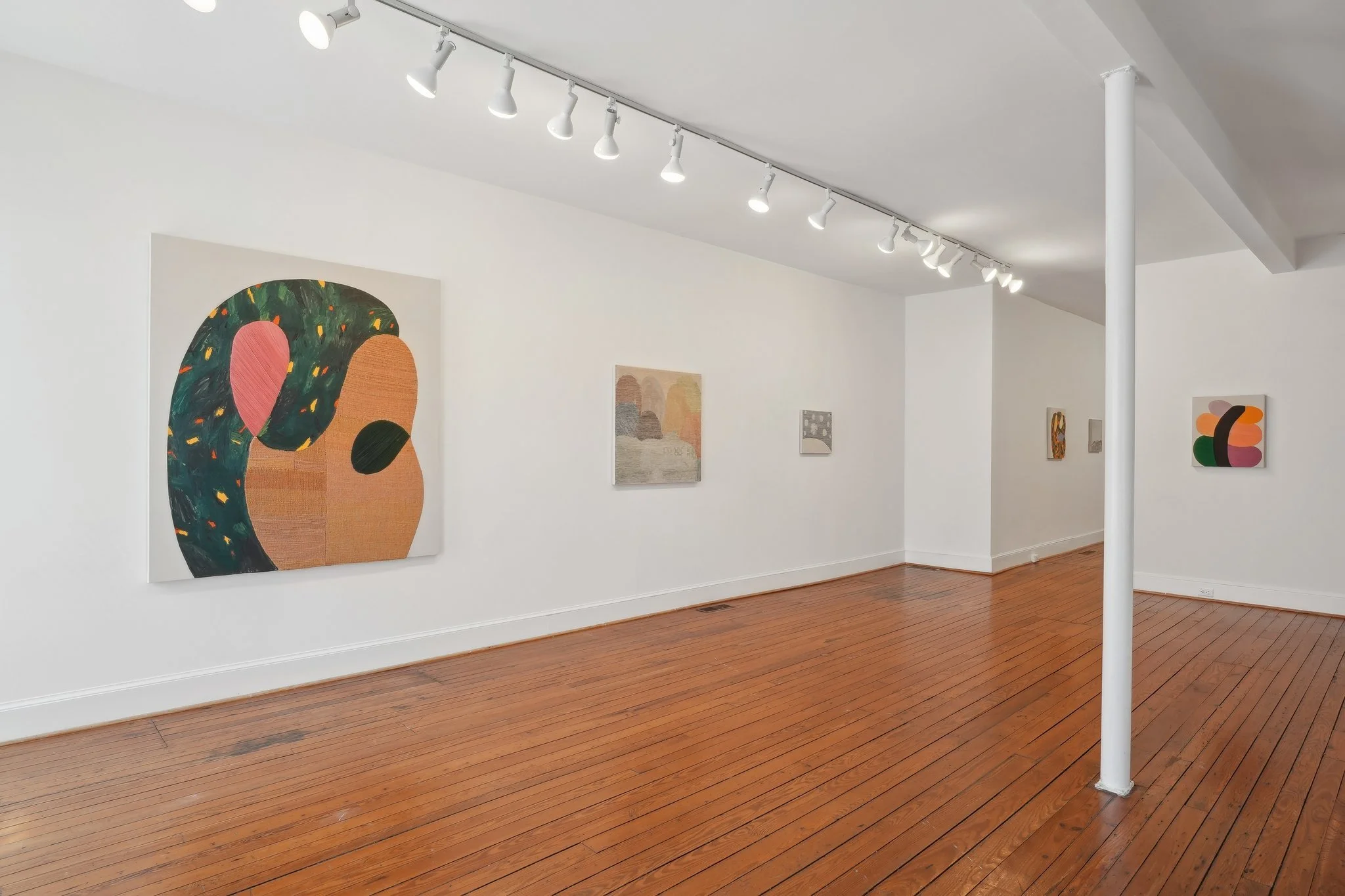 For this dual show, Matson and Valdez present Milk Tide, an exhibition of mixed media paintings that explore the history and memories the body holds and their deep connection to the land they grew up on. While the works do not depict direct references to specific landmarks, the iconography of landscapes becomes evident through the layering and rounding of shapes within the work. The artists’ unique interpretations of the world emulate the softness of memories and their evolution as the mind attempts to preserve them. Both artists deviate from traditional painting methods, creating eye catching texture and patterns through the use of weaving and textiles. Their methods and intentions come together seamlessly to bring this show to life.
